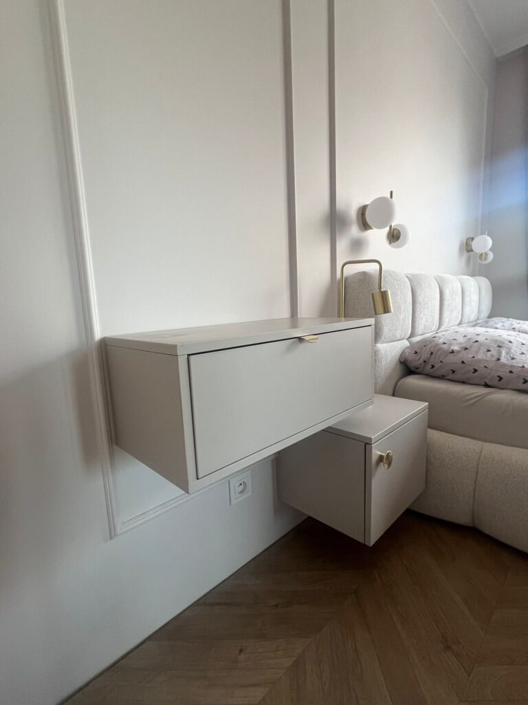 Nie wykonujemy pojedynczych mebli, takich jak szafki nocne czy łazienkowe — wyjątkiem są projekty umeblowania całego domu lub mieszkania. W takim przypadku realizujemy spójną zabudowę każdej przestrzeni: od kuchni, przez łazienkę, aż po salon i sypialnię.